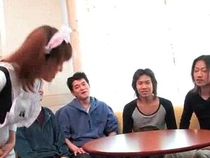 Dolce asiatica con tette sode affronta un gruppo di cazzi